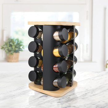 モダンスタイルステンレスキッチン調味料ラック16瓶回転スパイスカルーセルタワーカバースタイル調味料回転ベース