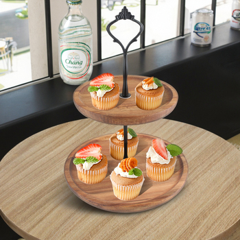 2層竹製木製サービングトレイウェディングカップケーキスタンド & フルーツ盛り合わせホルダーホーム & パーティー用